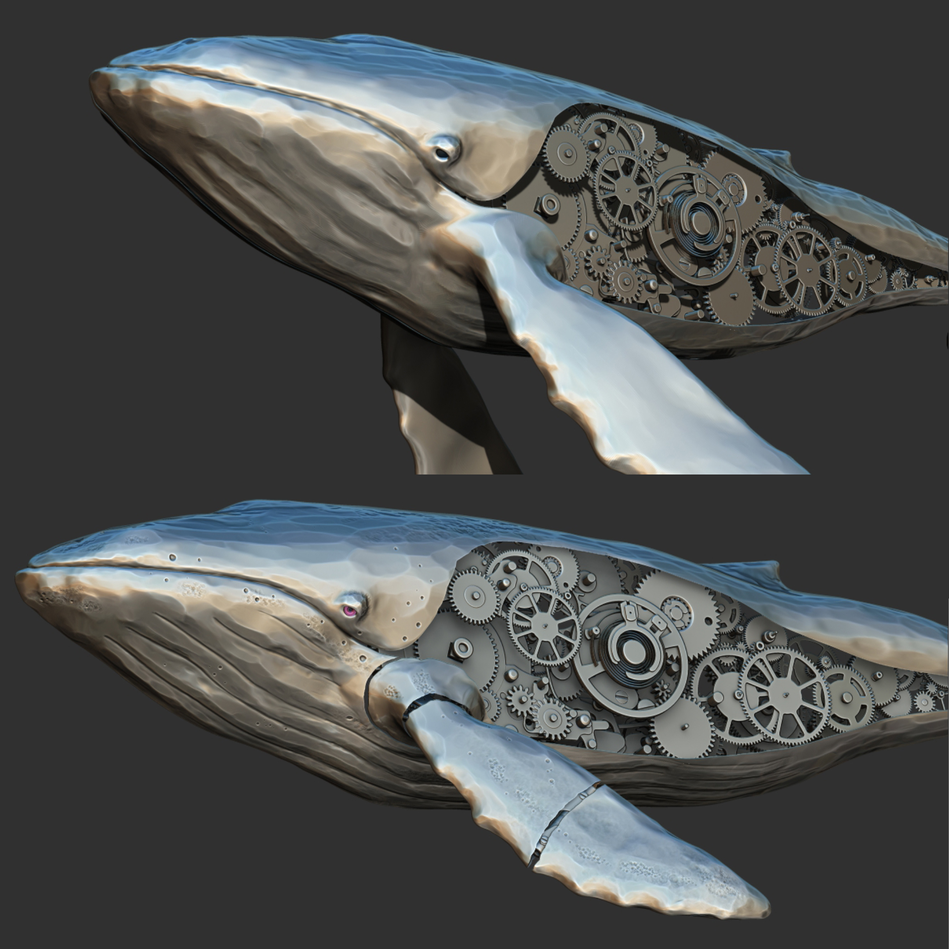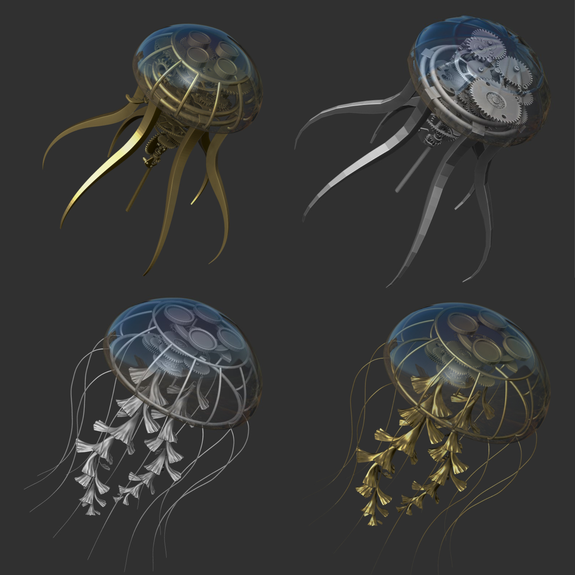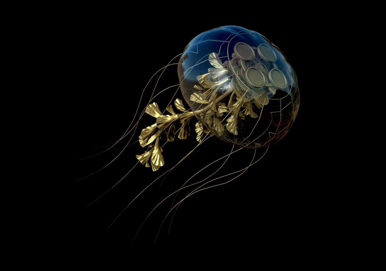Til denne snutten gjorde vi karakterdesign til tre mekaniske havdyr. En glassmanet, skilpadde og hval ble tolket gjennom steampunkens univers kombinert med detaljer fra mekaniske urverk.